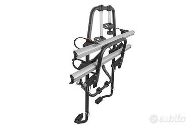 Portabici posteriore realizzato in acciaio con corsie in Alluminio; omologato per il trasporto di due bici normali o una elettrica, fissaggio con cinghie regolabili