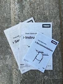 Vendo Porta bicicletta per auto, marca Thule modello ClipOn 9104 con istruzioni e libretti annessi, condizioni come nuovo.