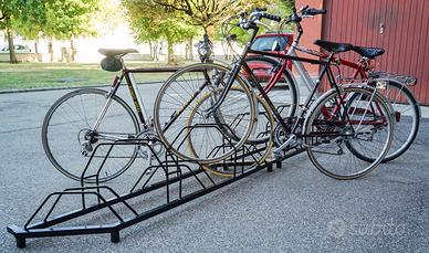 Porta biciclette NUOVO componibile in due pezzi da 5 posti, le bici posizionate a forma di resca, materiale in metallo verniciato di nero a polvere. Si puo posizionare sia all'interno e all'esterno
