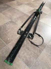 Porta biciclette per auto in ferro verniciato, da fissare a barre trasversali con distanza massima tra i 2 interassi di 130 cm, completo delle sue fascette riapribili per fissare le ruote.