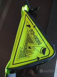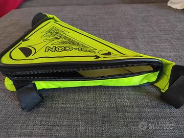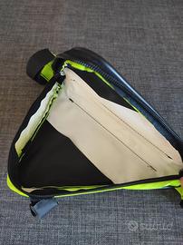 Porta oggetti da applicare alla bicicletta in ottime condizioni. Ha tre punti di attacco alla bici tramite strappo. Zip per la chiusura.