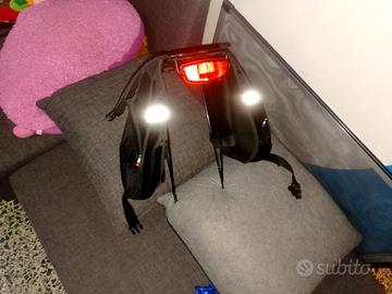 Vendo portapacchi universale con faro posteriore a pile e borse laterali con strisce catarinfrangenti,in ottime condizioni