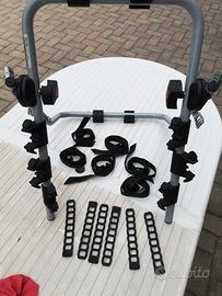 Portabici 3 posti, acquistato per ford kuga. Completo di cinghie e cuscinetti per il montaggio. Carico massimo consigliato 45 kg. Usato pochissimo.