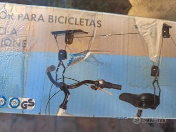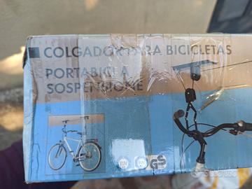 Portabici a sospensione da soffitto. Scatola danneggiata, ma prodotto integro.