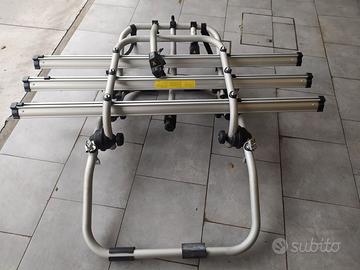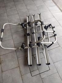 Vendo x inutilizzo. usato 2 volte e poi lasciato in garage. E' un portabici da portellone posteriore, in alluminio, per il trasporto di 3 bici (no E-Bike). Telaio bici: diam. min 22mm max 55mm. Portata max 45kg (max 15kg per canalina). Montaggio delle bici semplice e veloce grazie ai bracci removibili inclusi. Realizzato in alluminio elettrosaldato. Richiudibile e compatto per viaggiare a vuoto senza bici. Montaggio semplice e veloce grazie alle 6 cinghie con ganci plastificati antigraffio. Lunghezza canalina 125cm, per bici con passo fino a 117cm . Distanza canaline 15cm