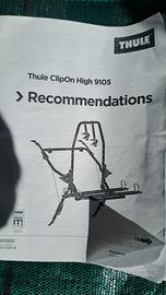 Portabici Thule ClipOn High 9105da portellone posteriore per trasporto fino adue biciclette. Grazie alla sua struttura rialzata, mantiene visibili la targa e le luci posteriori dell'auto. Capacità di carico 30kg. Sistema brevettatoSnap-on, che permette un montaggio a scatto. Apertura del portellone anche con il portabici montato (senza bici)