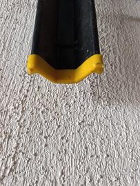 porta bici in tubi e profilati in acciaio, con finiture in plastica e gomma e supporto in acciaio inox per carrello. adatto per qualsiasi supporto, basta sbullonare le sezioni e montarle altrove. le sezioni sono tre, ognuna assicura una bicicletta.
