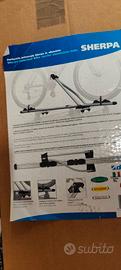 Vendo portabici da tetto in alluminio modello Sherpa,usato ma in buone condizioni. Con chiave per chiusura del morsetto,il quale si attacca alla pedivella del pedale,NON AL TELAIO. Completo di morsetti per attaccarlo alle barre sopra tetto.