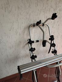portabici che si appoggia su paraurti e si aggancia a portellone per 3 bici. usato poco . tutto alluminio. marca fabri