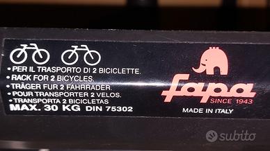 Vendo per inutilizzo portabici FAPA per 2 bici - portello posteriore (Giulietta, Bravo, Golf, simili). Solo se veramente interessati contattare per ritiro a mano