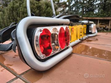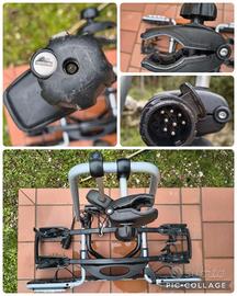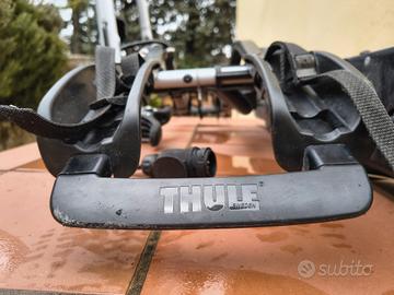 Vendo portabici per gancio traino Thule Euro Ride 940. Capacità di carico 2 bici. Pieghevole, x comodo accesso al portabagagli dell'auto con bici caricate. In ottime condizioni e perfettamente funzionante, unico difetto, unicamente estetico, lieve spellatura sul cavo, prontamente isolato con nastro isolante (vedi foto), le luci funzionano alla perfezione. Usato poche volte, vendo solo per passaggio a portabici più grande, 4 posti.