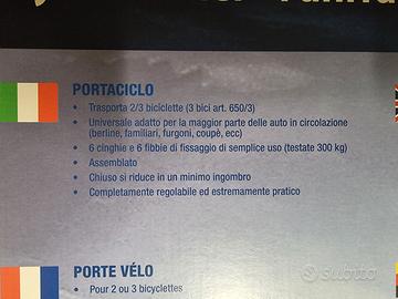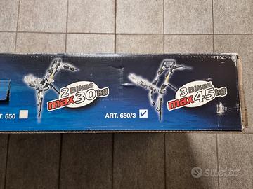 Portabiciclette NUOVO MAI USATO, ANCORA NELL'IMBALLO ORIGINALE, aperto e richiuso solo per verificare il contenuto.