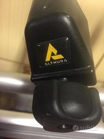 Portabici posteriore in alluminio Althura portata massima 45kg, fornito di adattatori, dove richiesto. Usato poche volte, vendo per non utilizzo. Ritiro in loco o spedizione a carico acquirente. N.T.