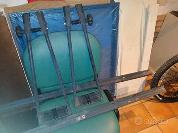 Portabici auto da tetto per 2 biciclette di tutti i tipi ( Mtb, corsa, passeggio). Cavalletti stringibili alla canna trasversale della bici con relativi binari da applicare sulle barre da tetto dell'auto.