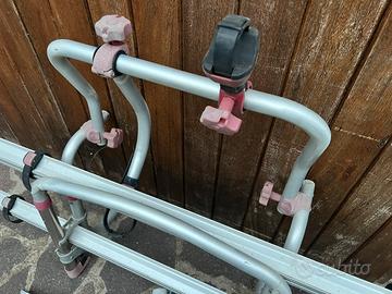 Completo di tutte le staffe necessarie al montaggio e di due supporti di fissaggio bicicletta, a morsa.