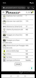 Portabici posteriore Peruzzo, modello Firenze 3 bici. Utilizzato solamente due volte e completo di tutti gli accessori forniti in dotazione. Manca solo la scatola che era danneggiata già all'acquisto.