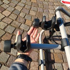 Usato, in buono stato, solo qualche piccolo segno, è completo di retina antiscivolo sui supporti, di un adattatore per poter trasportare una bici da donna e di due bracci fissi per una migliore stabilità delle biciclette: