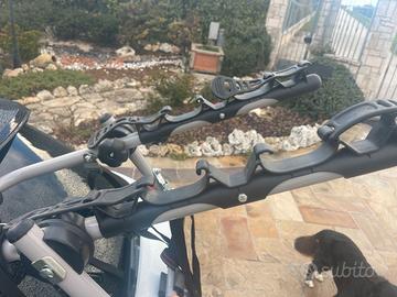 Portabili posteriore, ancorato con doppia cinghia superiore, 6 cinghie a tenuta extra testate 250 kg ciascuna e 6 ganci temperati testati 350 kg ciascuno. Sistema anti distacco per le cinghie inferiori e sistema bloccabici brevettato, dotato di protezione telai con effetto ammortizzatore. Cinghia di sicurezza cucita direttamente sul portabici.