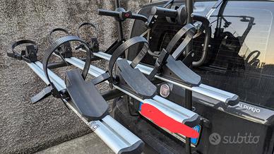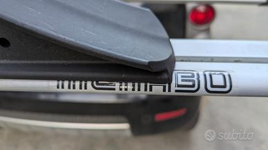 Portabici da portellone Menabo in perfette condizioni. Trasporto fino a 3 bici. Compatibile con: ALFA ROMEO 147 (2000–2010) AUDI A3 (2004–2012) A3 Sportback (2004–2012) A4 Avant (2000–2007) A4 Allroad (2007–2015) A5 Coupé BMW Serie 1 (2004–2019) Serie 5 (1995–2003) X1 (2009–2012) X3 (2010–2017) CHEVROLET Aveo Trax CITROEN C3 (2001–oggi) C3 Picasso C4 DS3 Saxo DACIA Sandero Sandero Stepway Logan MCV Jogger Lodgy FIAT 500L Living Bravo Grande Punto Punto (tutte le serie) Panda Idea Stilo Sedici FORD Fiesta (tutte le serie) Focus Fusion Ka / Ka+ Ecosport HYUNDAI i10 i20 i30 ix20 Tucson Santa Fe KIA Picanto Rio Ceed Sportage Sorento Stonic Venga MAZDA 2 5 CX-3 MERCEDES Classe A Classe B Classe C Station Wagon Classe M NISSAN Micra Note Qashqai Leaf OPEL Corsa Astra Adam Karl Mokka Zafira PEUGEOT 106 206 207 208 307 2008 5008 RENAULT Clio Twingo Scenic Koleos SEAT Ibiza Leon Ateca Altea Tarraco SKODA Fabia Citigo Karoq Kodiaq SUZUKI Swift Vitara SX4 Ignis TOYOTA Yaris Corolla Auris Verso Avensis VOLKSWAGEN Golf (III–VII) Polo Passat Tiguan Touran T-Cross VOLVO V50