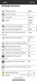 Portabici modello firenze e-bike. Usato due volte, già montato. Vedere sul sito la compatibilitá con i modelli di macchina. Ha un piccolo graffio per il resto perfetto. I prezzi del sito in foto sono IVA esclusa. Per due bici o ebike, si può comprare pezzo per terza bici. Bici fino a 29’. Compreso di due braccetti che si comprano a parte. Presente altro pezzo nin montato che serve per altri modelli di vettura.