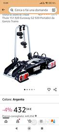 Vendo portabici Thule euroway G2 920 13 pin, usato SOLO una settimana,verificabile visivamente,adatto anche per ebike con pneumatici fino 3,50" e chiaramente tutti modelli con gommatura inferiore No spedizione
