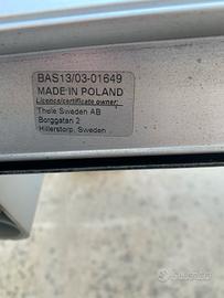 Testo: Thule Portabici posteriore BackPac 973 Vendo portabici posteriore Thule BackPac 973. Inclusi: Kit di montaggio Thule 973-18 Serratura Thule con chiave Porta 2 biciclette, con possibilità di aggiungere terzo binario (adattatore 973-23 non incluso). Montaggio su portellone posteriore, struttura robusta Thule. Usato ma perfettamente funzionante. Compatibile con vari modelli di auto tramite kit di montaggio dedicato (verificare compatibilità con la propria vettura). Preferita consegna a mano per via delle dimensioni. Vendita tra privati, senza garanzia o reso.