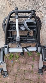 vendo portabici posteriore per 2 bici della Thule modello 993 in perfette condizioni. Portabici a piattaforma rialzata per portellone posteriore, Non copre le luci posteriori e la targa, Cavi in acciaio per la massima sicurezza nel fissaggio al veicolo