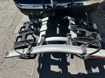 Vendesi portabici thule , perfetto come funzionamento, qualche segno di utilizzo dovuto ai pedali delle bici ed alla rampa per la quarta bicicletta , doppie chiavi completo dei tre bracci per le bike.chi interessato includo foto dei graffi normali segni!!!