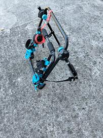 Vendo portabici universale Decathlon usato due volte; può portare al massimo tre bici per un totale di massimo 45 kg, gli innesti si adattano ad ogni telaio. Sempre tenuto al riparo.