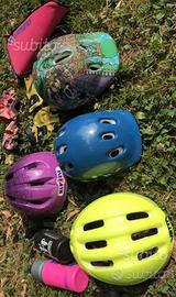 Vendo 4 caschi bici, Vetta, Kup Line, misure M, S/M, S, S/XS, borraccia Bianchi, un porta oggetti con straps per fissaggio e cerniere Shimano uno Marin e due paia di guantini tutto così come da foto.