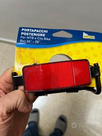 Portapacchi posteriore per bici, con catarifrangente, nuovo e mai usato. No spedizione, ma solo consegna a mani.