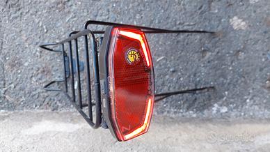 Vendo porta pacchi posteriore per bici con ruote da 28, usato poco, buona qualita, portata 25 kg, con luce a tasto funzionante.