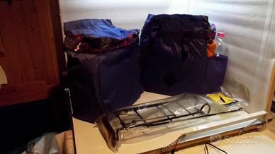 Portapacchi e borse per bicicletta . - portapacchi MTB per applicazioni a cicli 24"-26", completo di gemma posteriore, con graffa portagiornale (nuovo in confezione originale) - due borse laterali con porta-bottiglia 28x15x32 cm come da foto