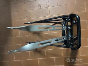 Portapacchi per bicicletta TOPEAK con lucchetto- in ottime condizioni– Struttura in metallo resistente, colore nero, con catarifrangente posteriore e supporto per borsa o cestino.