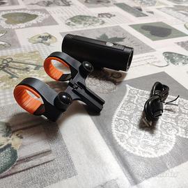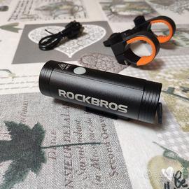 Vendo nuovissimo faro led da bici della potenza di ben 800 lumens, capace di sviluppare un fascio di luce bianchissima che arriva sino a 200 m. Realizzato in alluminio anodizzato resistentissimo agli agenti atmosferici, impermeabile con grado di protezione IPX6 che lo rendono adatto per uso continuo sotto la pioggia. Batteria al litio da 4000 mAh, ricaricabile mediante un connettore USB tipo C, che garantisce un’autonomia sino a 6 ore di luce ininterrotta. Presenta 5 modalità di emissione di luce, comodamente selezionabili dal pulsante luminoso di accensione/spegnimento, di cui 3 fisse di diversa intensità e due lampeggianti di diversa frequenza. Misure 98x32 mm, peso di appena 124 gr. Dotato di robustissima staffa a doppio collare che si fissa al manubrio a cavallo della pipetta e cavetto USB-C di ricarica.