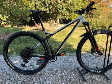 Taglia L (consigliata per 178 - 188 cm, ma molto compatta). Bici trail/Enduro con molte migliorie rispetto al montaggio originale (forcella, reggisella, ecc). Molto divertente in discesa e pedalabile in salita. Tenuta maniacalmente. Telaio e forcella pellicolati. Movimento centrale e serie sterzo appena cambiati. Vendo per passaggio ad XC. Allego forcellino del cambio nuovo di ricambio e tappo della serie sterzo di ricambio.
