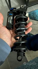 Fornisco con doppio ammortizzatore posteriore ROCKSHOX SUPER DELUXE ULTIMATE RCT 210X55 a molla e RockShox Deluxe Select R (di serie), forcella Fox 36 Performance 160mm con possibilità di mettere una 170mm.