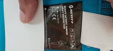 Gilè protezione schiena SCOTT. Taglia S, in ottime condizioni. Molto comoda e leggera in tessuto traspirante traforato ed elastico . Usata da mio figlio ma " scappata" di misura. Cinta elastica interna e zip frontale. Il materiale protettivo della schiena è leggero e si adatta bene al corpo non impedendo i movimenti. Va bene per ragazzi e adulti di piccola taglia. Tutto lavabile.