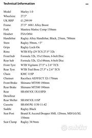 Ragley marley 1.0 taglia XL ruote 27,5 modello 2019 acquistata nel 2020, tenuta molto bene e poco usata, solo qualche lieve graffio da normale utilizzo, per le caratteristiche tecniche guardare la foto. Non si deve fare nessun lavoro perfettamente funzionante e pronta all’uso.