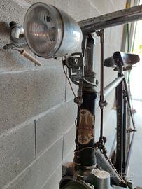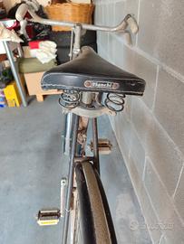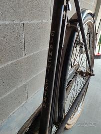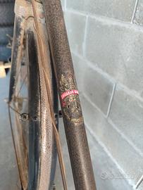 Vendo splendida bicicletta Bianchi Extra con freni a bacchetta esterni, autentico gioiello del ciclismo italiano d’epoca. Il numero di serie 3F54941 e le caratteristiche tecniche la collocano tra la fine degli anni '30 e l'inizio degli anni '40. La bicicletta è un ottimo conservato, ideale per un restauro conservativo che ne preservi la storia e la patina originale. Dettagli di pregio: Stemma frontale: Aquila coronata "Edoardo Bianchi" in metallo a sbalzo. Decalcomanie originali: Ancora ben visibili e integre sul tubo obliquo ("Fabbrica Motocicli Milano"). Sella originale: Marchiata Bianchi con targhetta metallica smaltata posteriore e doppia molla. Meccanica: Pedivelle marchiate Bianchi, freni a bacchetta esterni completi, carter originale. Parafanghi: Modello pregiato a "schiena d'asino" con coste laterali. La bici è completa in tutte le sue parti principali. Segni del tempo presenti che ne garantiscono l'autenticità. Un pezzo immancabile per collezionisti del marchio o per chi desidera una bici storica per manifestazioni tipo "L'Eroica". Prezzo: € 400 (Trattabile)