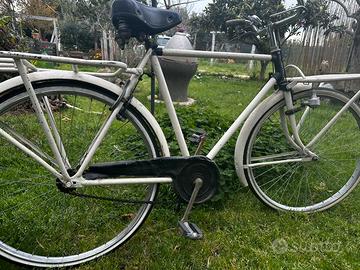 Doppia Opzione: "Visto e Piaciuto" o "Restauro Personalizzato" DESCRIZIONE: Vendesi autentica bicicletta da lavoro "furgoncina" marchio Torpado, originale degli anni '50. Un pezzo di storia con freni a bacchetta e doppi portapacchi giganti integrati. Proponiamo due modalità d'acquisto per venire incontro alle tue esigenze: OPZIONE A: "DA RESTAURARE" (€ 220,00) Prendi la bici nello stato in cui si trova (attualmente verniciata di bianco). Ideale per hobbisti e amanti del restauro che vogliono lavorarci personalmente. Meccanica solida e completa di tutti i pezzi originali. OPZIONE B: "RESTAURO PERSONALIZZATO" (€ 350,00) Ci occupiamo noi del restyling estetico! • Colore a scelta: Puoi decidere il colore del telaio (es. panna, verde salvia, nero opaco). • Dettagli bicolore: Possibilità di personalizzare parafanghi o portapacchi. • Look Vintage: Ideale come complemento d'arredo per vetrine, locali, B&B o giardini. (Tempi di consegna da concordare per la lavorazione). Caratteristiche tecniche: • Telaio rinforzato con doppi portapacchi grandi. • Sistema frenante a bacchetta. • Sella a molle d'epoca e fanale originale. Luogo: Ritiro a mano a Terracina.