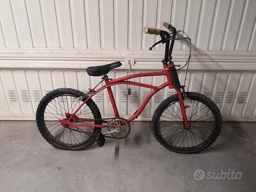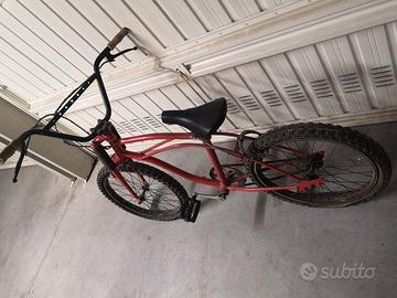 Vendo splendida bicicletta stile Saltafossi Muscle Bike Chopperina vintage anni 80/90, un pezzo raro caratterizzato da un telaio a doppia canna curva dal design unico. Modello custom d'epoca ideale per un progetto di restauro conservativo o per una personalizzazione. Caratteristiche principali: Manubrio: Modello "Ape Hanger" alto, originale e di grande impatto visivo. Forcella: Dotata di soffietti protettivi neri in stile motociclistico. Design: Linee sinuose che ricordano le iconiche cruiser americane. La bici è rimasta ferma in garage per oltre 10 anni, il telaio è solido. Pneumatici e camere d'aria da 20" sono da sostituire in quanto sgonfi e stallonati dal tempo, vanno sistemati anche i freni ed effettuata una revisione generale. Per qualsiasi tipo di informazione non esitate a contattarmi.
