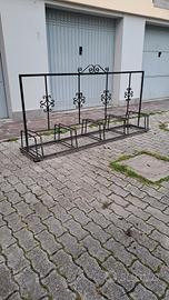 Vendo robustissima rastrelliera in ferro, 5 posti. È stata sempre all'aperto e la vernice nera non è più quella di una volta. Misure: L mt 2,30 H 104 cm,profondità 50 cm. Non spedisco.