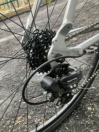 RC TRIBAN 100 (Decathlon) Acquistata nel 2020, usata pochissimo su rulli. Piccoli graffi (ha sfregato contro muro grezzo cui era appoggiata) sul freno come da foto. Con computerino come da foto.