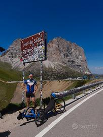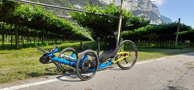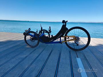 Vendo per esubero bici il trike reclinato , mezzo totalmente autocostruito completo di motore bafang 250 watt a norma e batteria 20 amp cambio shimano xt 9v freni idraulici, bici spettacolare grande scalatore e vero go-kart in discesa che regala enormi soddisfazioni permettendo di fare sporto in maniera estremamente comoda godendosi il panorama. adatta a persone con altezza di circa 170- 175 cm.