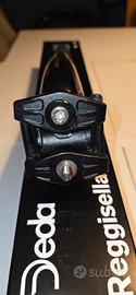 Vendo reggisella Deda carbon Superleggero, 27,2 , arretramento 25, usato solo per 6 mesi,poi sostituito per uno identico ma con arretramento a "zero", presenta solo una piccola sbavatura superficiale sulla vernice, dovuta al supporto Garmin Varia, ( da non confondere con le righe orizzontali , originali del reggisella " Deda") come si vede nella foto n. 2, ma assolutamente non ci sono danni strutturali.
