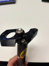 Reggisella PMP in carbonio monoscocca, Made in Italy. Leggero, rigido e affidabile, ideale per bici da corsa, MTB o gravel. Design elegante con finitura in carbonio visibile e clamp preciso.