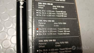 Reggisella telescopico Switch SW 100 diametro 27,2 , lunghezza 400 mm, estensione 105 mm , peso 420 gr. perfetto come da foto.