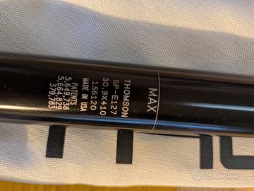 Vendo nuovo reggisella Thomson (made in USA) diam. 30.9mm altezza 410mm. Nuovo, mai utilizzato con astuccio in tessuto dedicato.