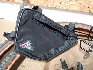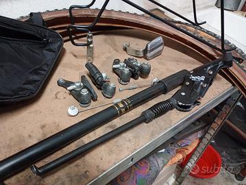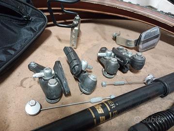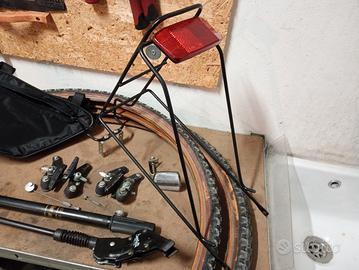 Ricambi e accessori usati per mountain bike vintage: - portapacchi - freni cantilever Shimano BR-TY70 - cavalletto universale - borsetta telaio - pompa Compresi 2 copertoni 26' un po' datati, ma con battistrada in ottime condizioni. Consegna a mano in Bolognina o Zola Predosa.